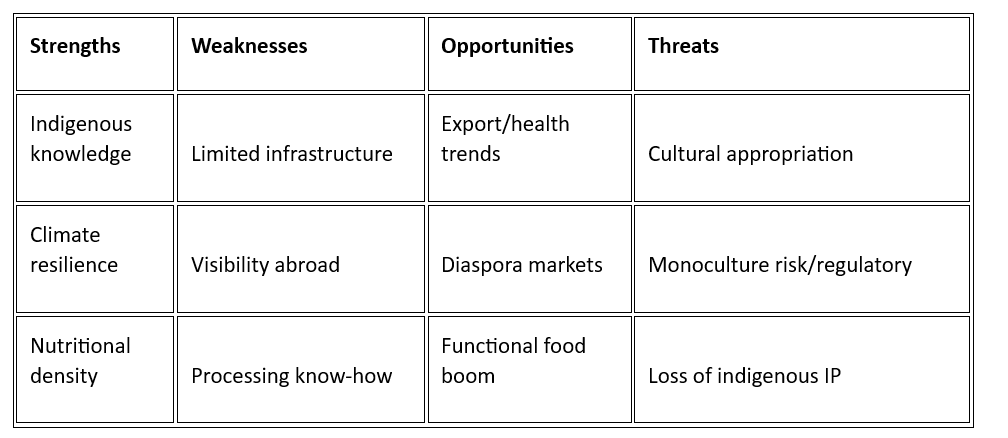 - Global Pathways: Properly branded and supported, African crops like Bambara groundnut or fonio could become mainstays in health food aisles as both functional ingredients and icons of climate-smart eating.