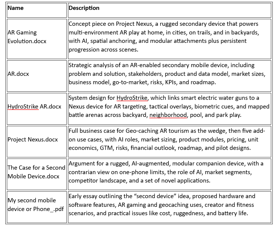 Start with Gaming Geo-caching and AR Layered Tourism because it is fun, easy to explain, and sponsor friendly. Use the same AI, maps, and device to expand into creation, safety, mapping, drones, and care. The platform earns across hardware, subscriptions, content, and partnerships. The work is not to convince people to buy another screen. The work is to make place-based experiences safer, richer, and more creative than a phone alone can offer.