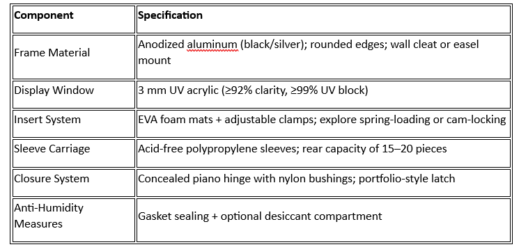 - Archival Safety: Integrate materials and sealing techniques that protect ink and paper—UV-filtering acrylic, acid-free sleeves, optional silica pockets.