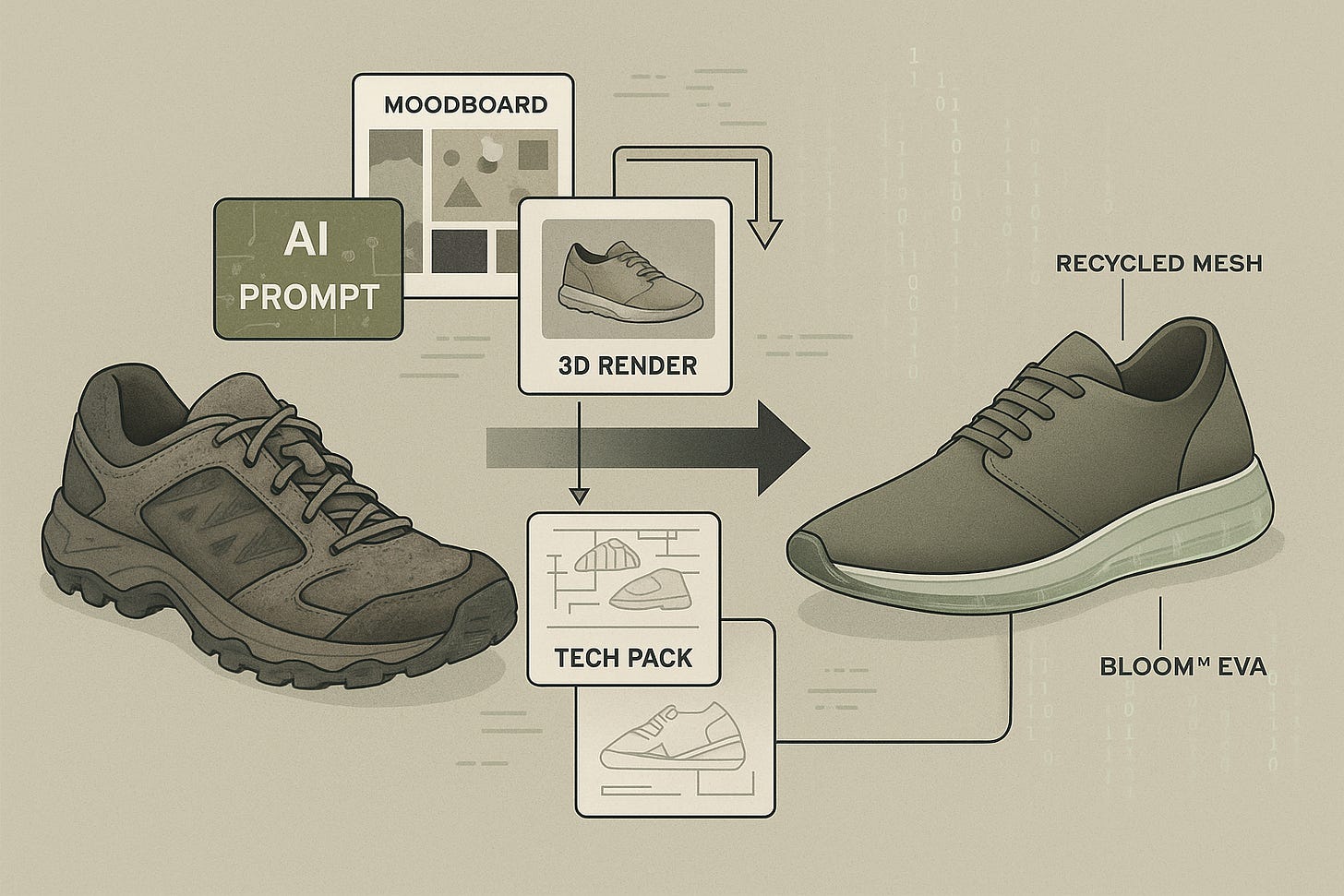With the right prompts and tools, it is possible to develop a concept, a materials list, and even a production-ready tech pack even without prior experience in footwear design. - Design systems scale ideas