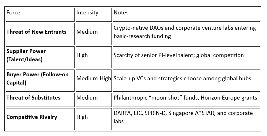 A4. Porter’s Five Forces (UK Deep‑Tech R&D Funding)