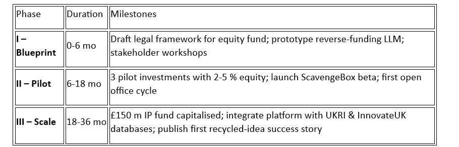 - Impact KPIs: £ leverage ratio, diversity index, carbon‑abated per £, patent‑to‑exit velocity.