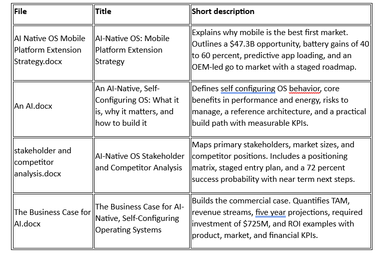It took a weird turn when I applied the concept of this post to mobile devices and this seems to have more traction and viability to market see: AI-Native OS: Mobile Platform Extension Strategy and I created an outline SRS AI Native Mobile Operating System SRS