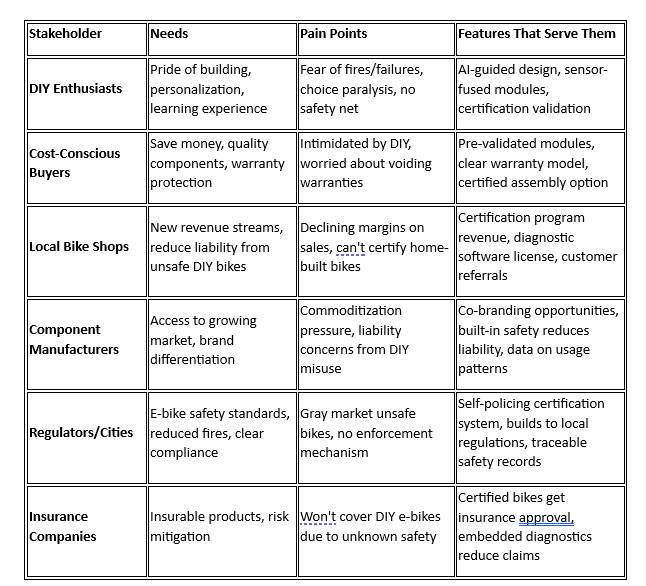 • Position as “Switzerland”: You’re brand-agnostic on components (unlike Bosch/Shimano), attracting builders who want choice
