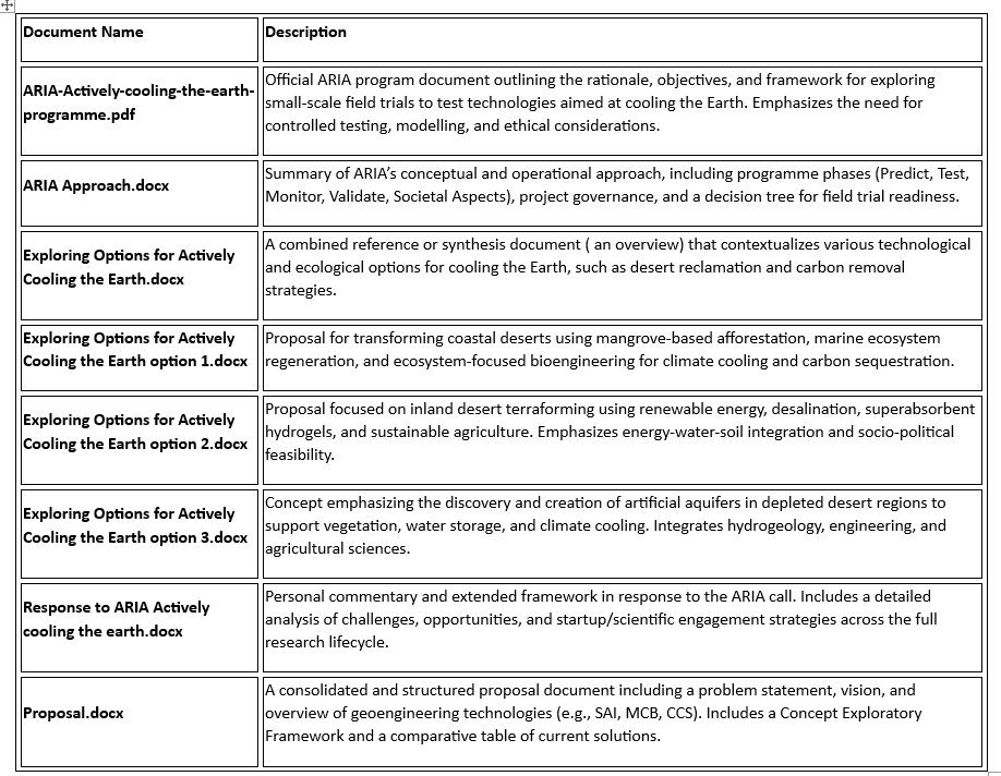- Regulatory: ARIA’s active funding call; international legal vacuum on planetary intervention