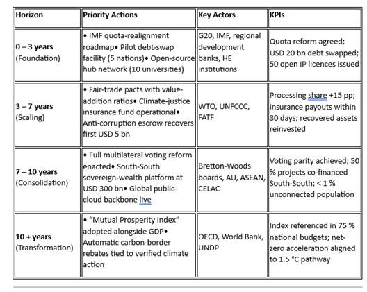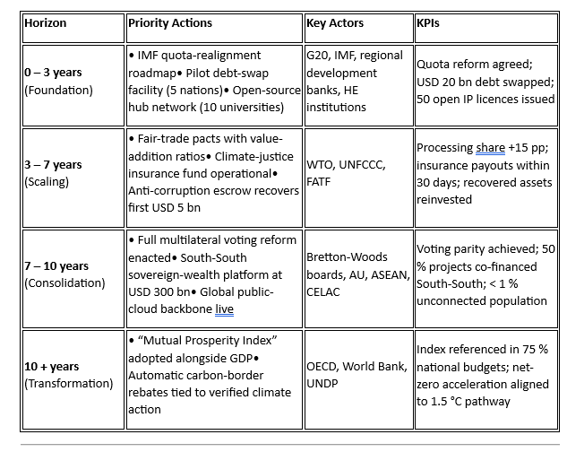 • Establish open-source innovation hubs pairing Northern universities with Southern start-ups.