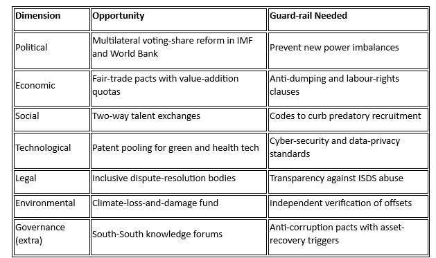 A 21st-century compact must treat Global South states as equal partners confronting shared climate, health and security risks. The philosophical pivot is from “fit to survive” to “fit to cooperate.”