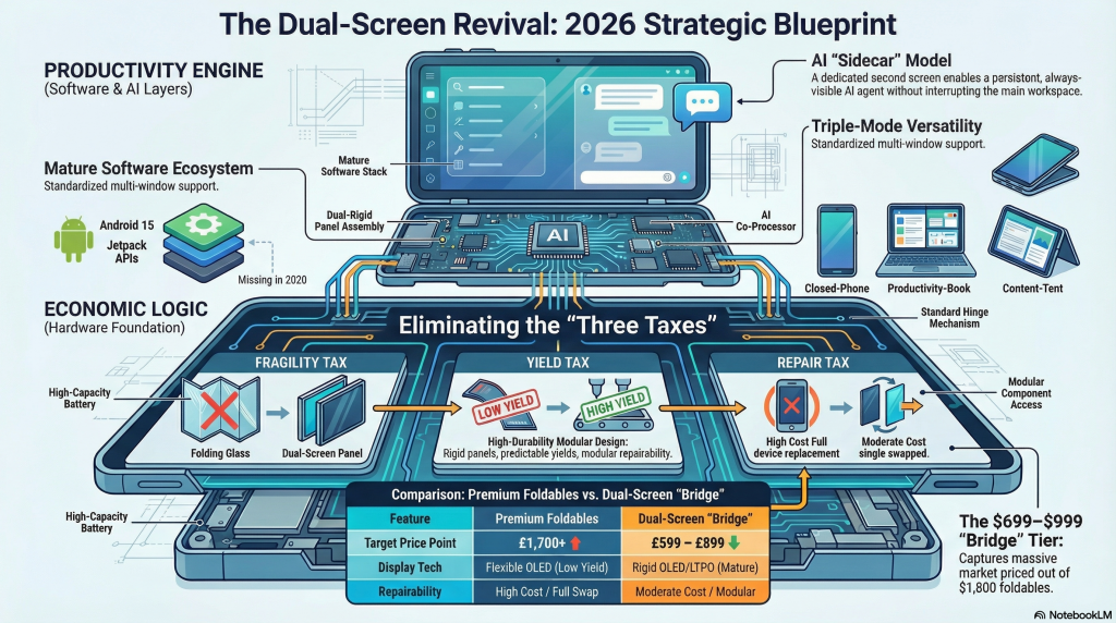 What follows is a comprehensive strategic analysis of why dual-screen devices may finally have their moment not as premium curiosities, but as a pragmatic bridge category that delivers foldable-class productivity at midrange economics.