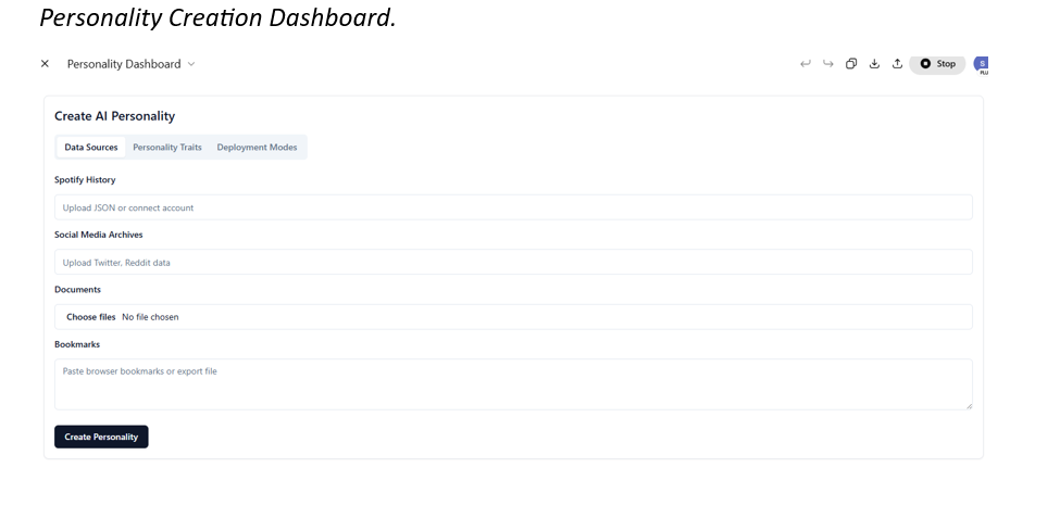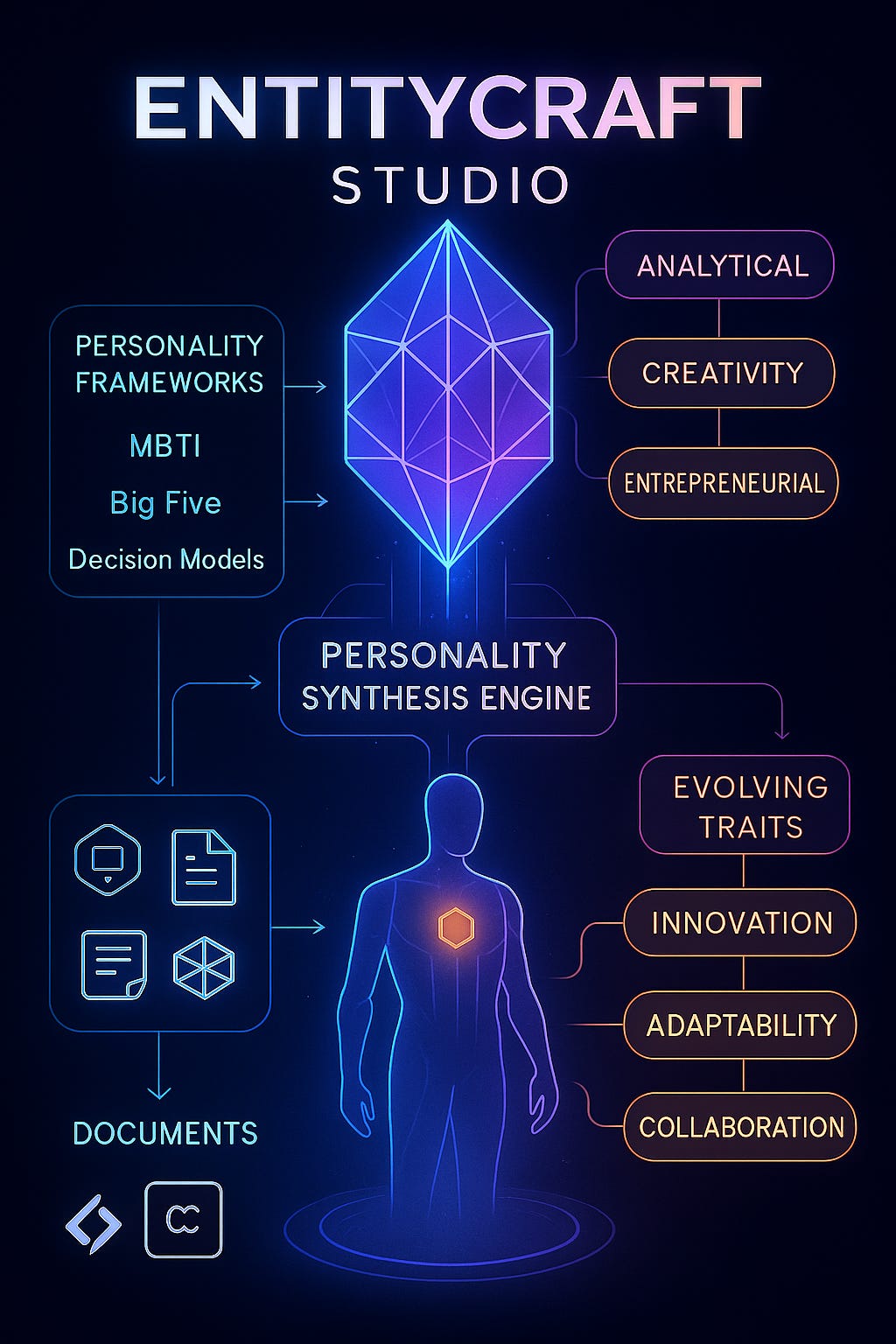 EntityCraft Studio is part of the broader Autonomous Personality Intelligence Platform (APIP) and is designed to create authentic AI entities by synthesizing rich personality profiles from diverse user data. It includes: