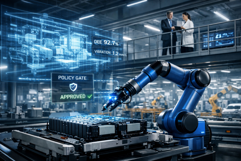 The core principle is straightforward. Every model-driven recommendation that could affect a physical process must pass through a policy and safety verification gate before it changes anything in the real factory. Separating the act of proposing from the act of executing is not bureaucratic caution. It is the engineering discipline that makes autonomous systems safe to operate at scale.