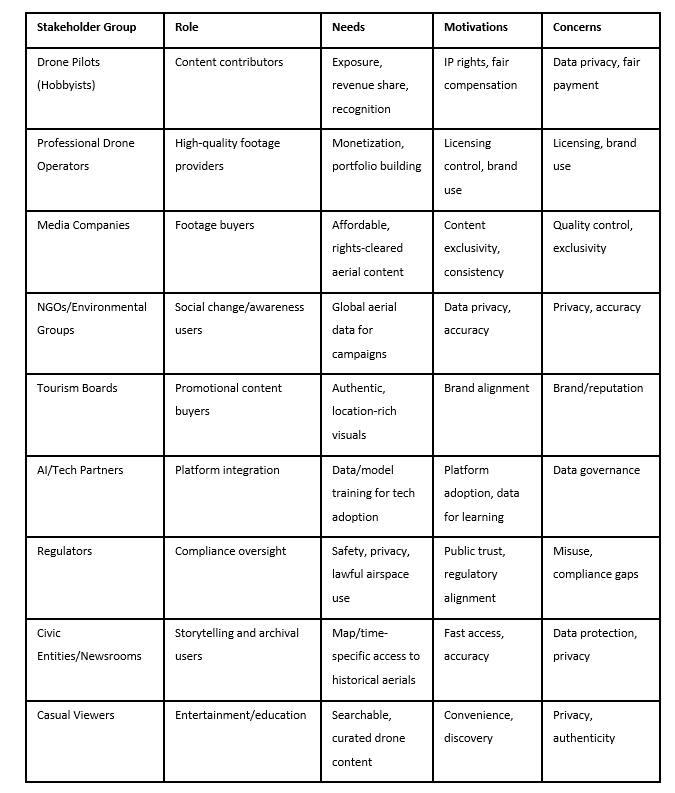 • Drone pilots, hobbyist contributors seeking exposure and revenue.
