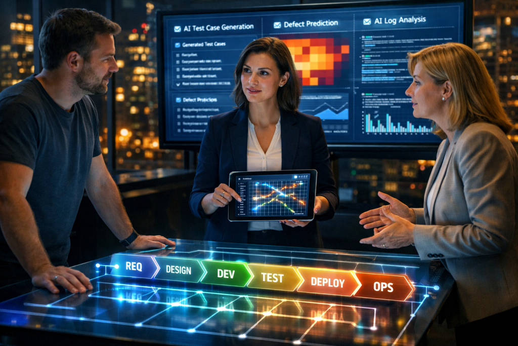 There’s a delivery track — test designers who work fluidly with AI tools, automation engineers who build and maintain intelligent regression suites, UAT leads who orchestrate acceptance processes with business stakeholders.