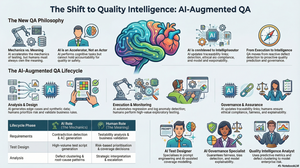 The version of QA that survives is the one that owns meaning, maintains accountability, assures governance, and ensures that in a world where AI participates in delivery, the humans in the loop are genuinely in the loop not just signing off on outputs they haven’t interrogated.
