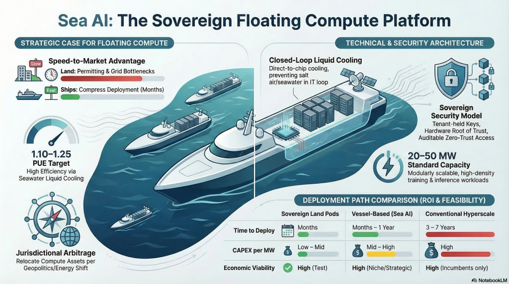Ship-based AI compute is not a replacement for land-based sovereign pods. It is a strategic accelerator and hedge—valuable when speed, flexibility, or jurisdictional optionality matters more than lowest long-term cost.