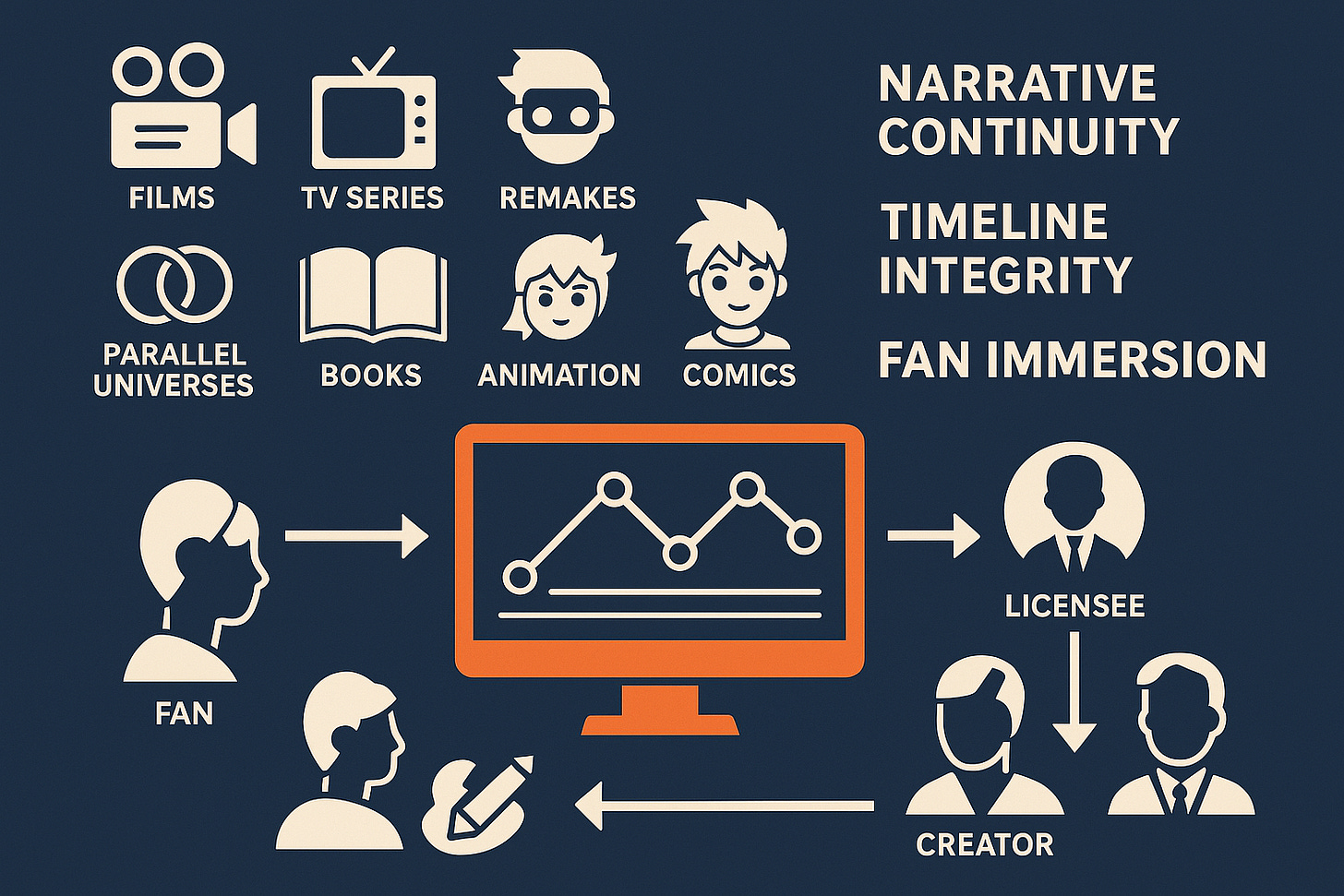 If I am a studio or content rights holder, owning IP across films, TV series, remakes, reboots, parallel universes, books, animations, and comics and I want to ensure narrative continuity, timeline integrity, and fan immersion across all formats and story arcs…
