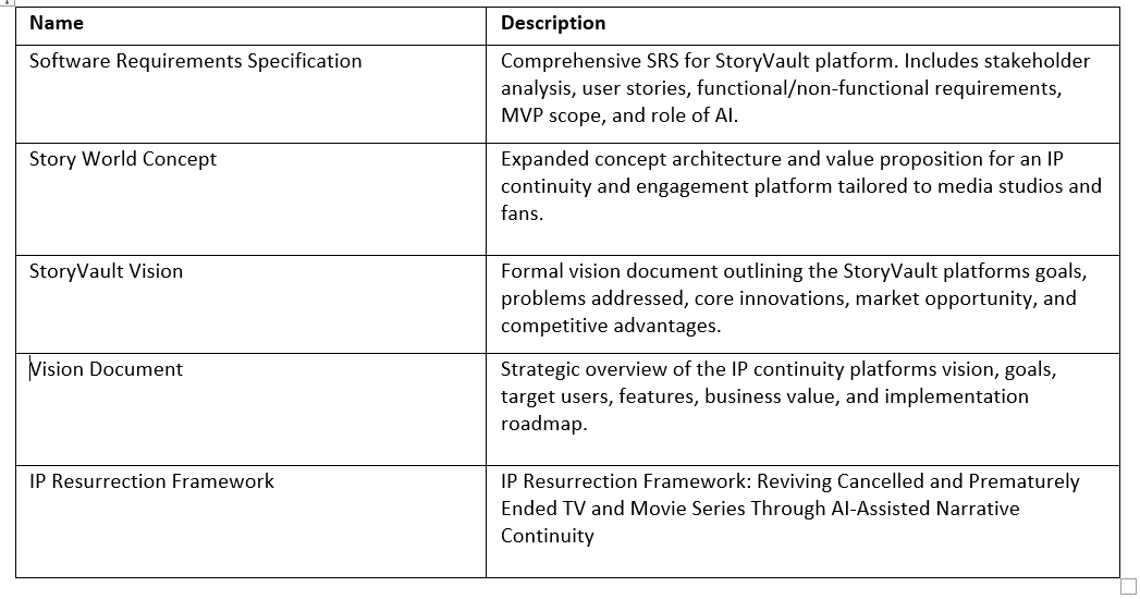 StoryVault is more than a platform. It is a paradigm shift—a narrative operating system for the IP age. At its core, StoryVault transforms passive content archives into active, monetizable ecosystems. Everything from theatrical releases to deleted scenes, from character backstories to unused concept art, is treated as living IP that can be structured, explored, and monetized.