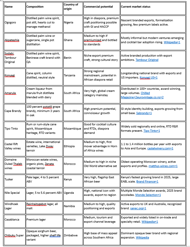 • African spirits market growing with rising middle class demand.