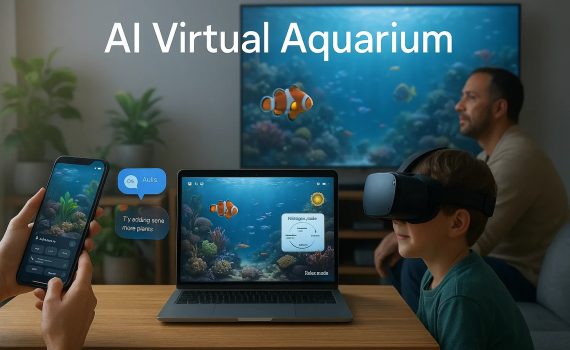 A photorealistic virtual aquarium that removes the cost and complexity of real tanks while adding real learning value. Users build aquariums, creators earn from content, and educators gain measurable outcomes through AI driven fish behavior and ecosystem simulation.