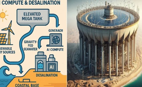 This article explores a moonshot idea. A desert megastructure that uses gravity, renewable energy and pumped storage to power AI server farms while producing freshwater as a byproduct. It highlights the triggers that could make this vision viable from 2025 onward.